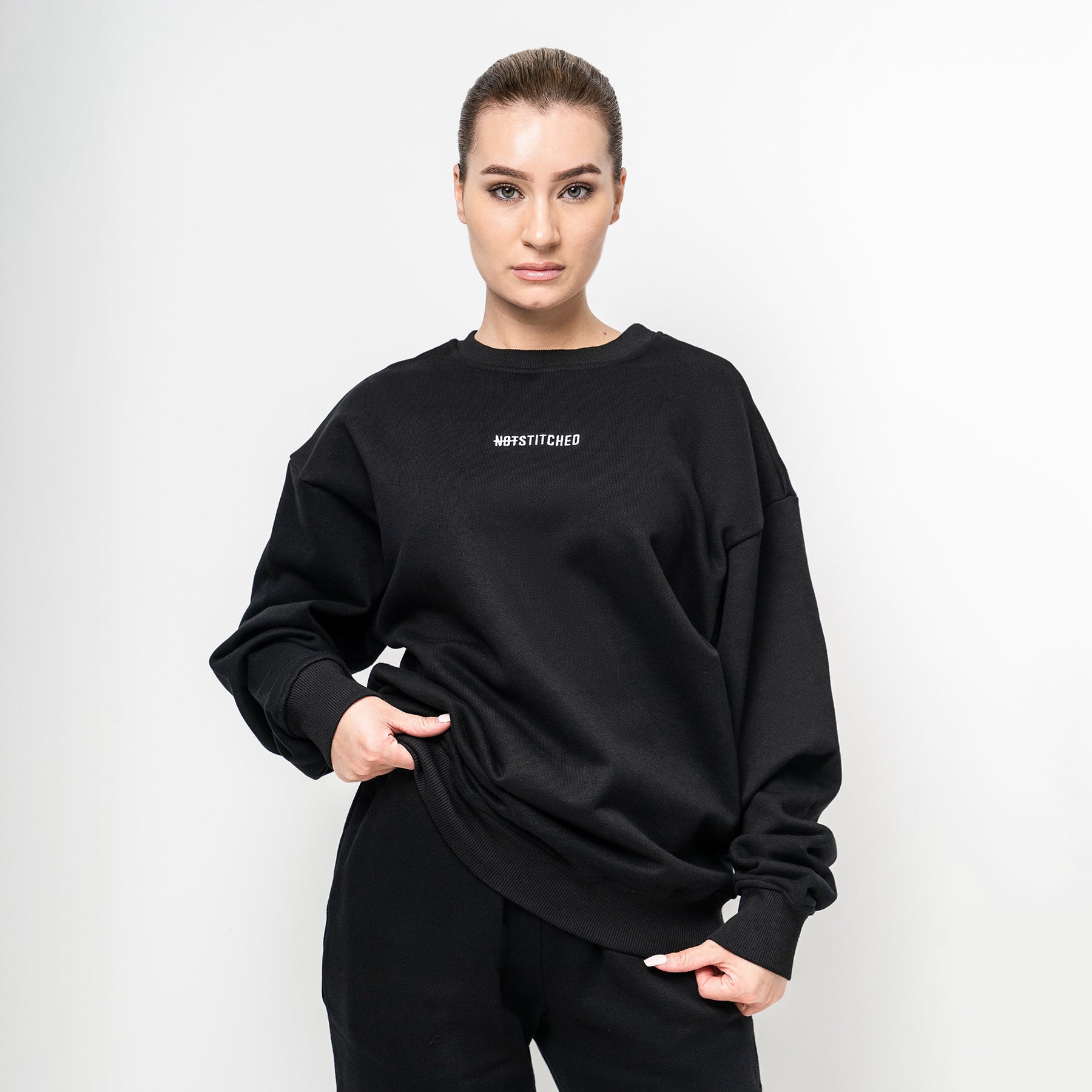 طول نينا 163 سم / 5'4 وترتدي مقاس S (أسود)